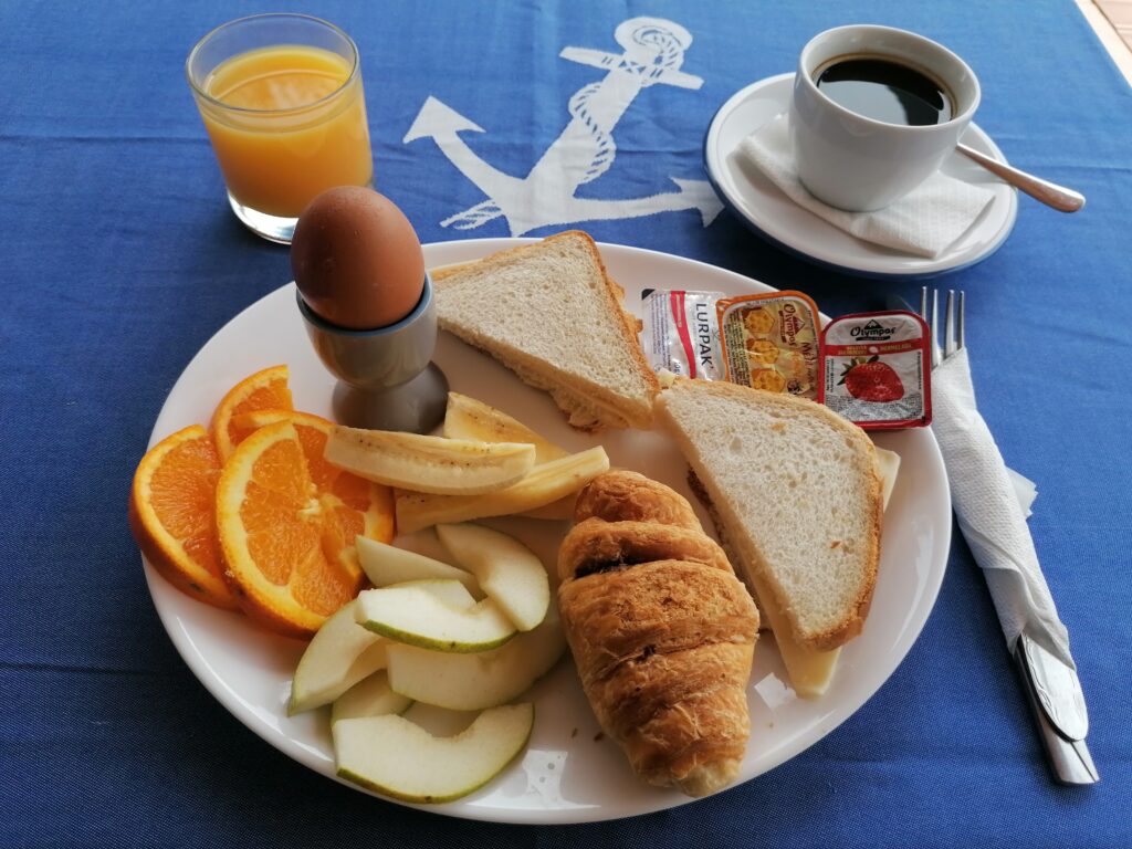 You can choose our buffet continental breakfast or a light lunch/ snack, juices and beverages.